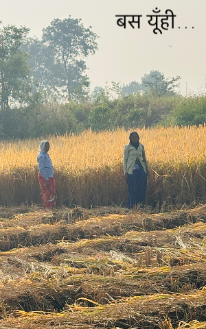 कल ही गावँ में आना हुआ। अब गाँव मतलब खेती बाड़ी वाली बातें…गाँव की औरतें घर में नहीं रुकती हैं। वे रोज़ काम पर जाती हैं। आज कल खेती में धान कटाई चल रही हैं। कोई कह रहा था की गाँव में आजकल खेत में काम करने के लिए औरतें नहीं मिल रही हैं।