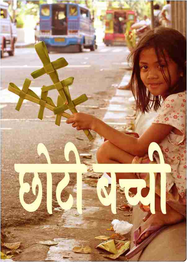 उसने एक छोटी - सी लाल रंग की फटी पुरानी फ्रॉक पहन रखी थी जो उसके हालात अपने आप बयां कर रहे थी।