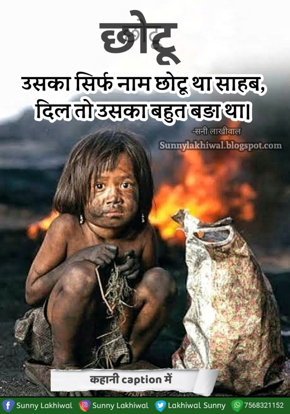 मेरे कपड़े आंसुओं से पूरे भीग चुके थे और मैं सोच रहा था कि उसका नाम ही "छोटू" था उसका काम तो बहुत बड़ा था !