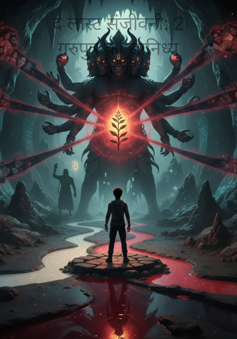जैसे ही आर्यन अंदर कदम रखता है, उसे संगम के बीचों-बीच एक छोटा सा टापू दिखता है, जहाँ हवा में तैरती हुई वह दिव्य संजीवनी अपनी पूरी आभा के साथ मौजूद है। लेकिन वहाँ पहुँचने के लिए उसे उन तीन धाराओं (सफ़ेद, लाल और काली) के बीच से होकर गुज़रना है।
