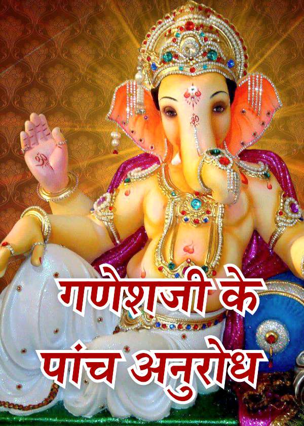 " हां जरूर नाराज मुजे देखो, मैं अब क्या करता हूं? गणेश जी उनकी प्रतिमा में अंतर्ध्यान हो गए । और प्रतिमा के सामने रखे हुए सभी प्रसाद को खाने लगे। यह देख सभी भक्तजनों आनंद विभोर हो गए । और जोर से गणपति बप्पा की जय बुलाने लगे। कई लोग तो, और भी प्रसाद लेने के लिए दौड़ पड़े। प्रसाद खाते हुए रुक कर गणेश जी ." बोले हे मेरे प्रिय भक्तों आपको मेरा पांच अनुरोध है । क्या तुम मेरी बातों का अमल करोगे ?