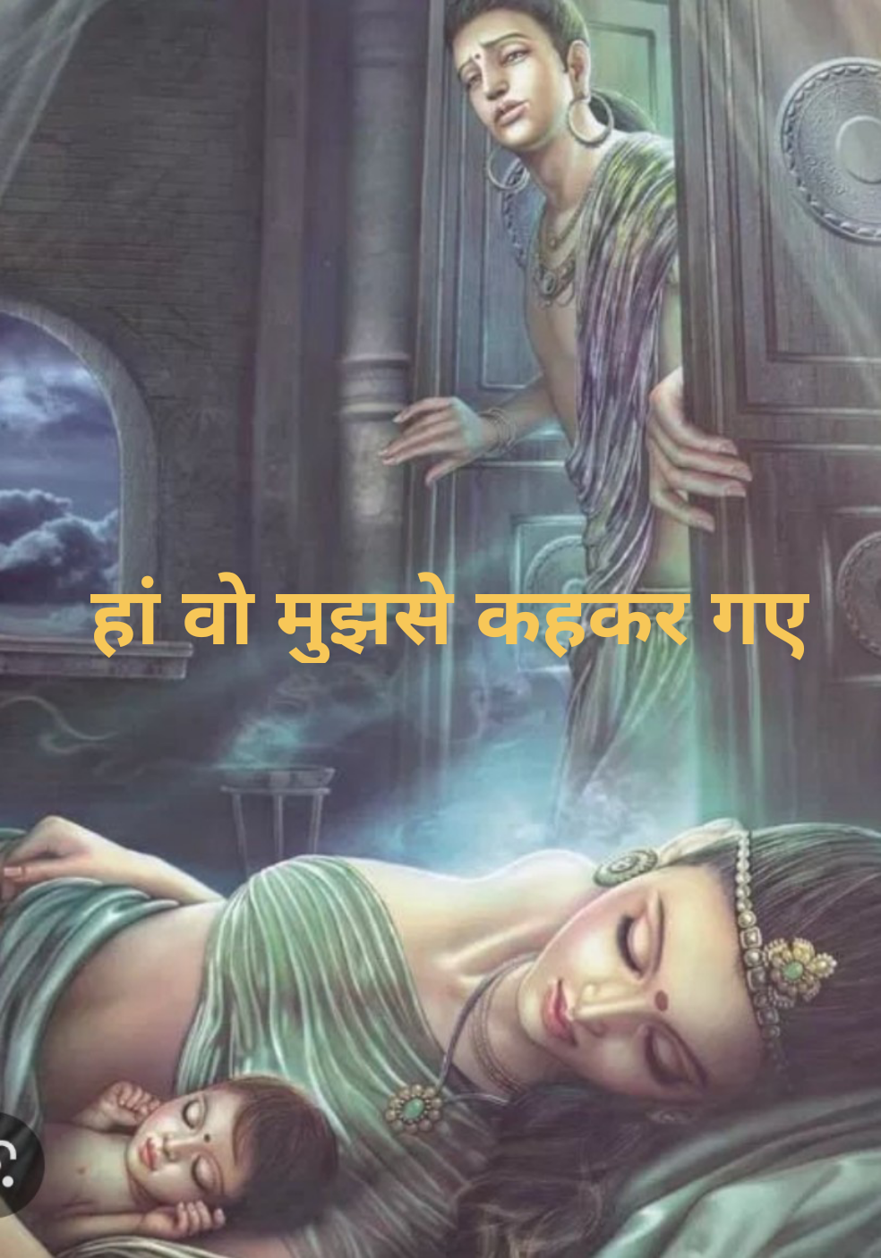 सिद्धार्थ शांत मन से यशोधरा के कक्ष में गये यशोधरा को उठाया अचानक से आधी रात को अपने कक्ष में सिद्धार्थ को देख हड़बड़ा उठी, सिद्धार्थ ने अपने मन की बात बताते हुये जाने की आज्ञा माँगी यशोधरा इतने वक्त में सिद्धार्थ को समझ चुकी थी सिद्धार्थ को रोकना व्यर्थ था, उसने जाने की अनुमति के साथ एक वचन सिद्धार्थ से लिया की जब उनको अपने प्रश्नों के उत्तर मिल जायें तो वो वापस अवश्य आयेंगे। यशोधरा ने सिद्धार्थ को विश्वास भरा आश्वासन दिया की वो राहुल को पिता का भी प्यार देगी उसकी परवरिश में कोई कमी नही रखेगी। सिद्धार्थ जाने के लिए उठ खड़े हुये यशोधरा भी पुत्र को गोद में लिए साथ चल दी सिद्धार्थ ने प्रश्न सूचक दृष्टि से यशोधरा को देखा मुस्कुरा दी यशोधरा बोली इतना विश्वास किया है तो थोड़ा और सही आप को मैं खुशी - खुशी विदा करना चाहती हूँ। द्वार पर छंदक घोड़ा ले कर खड़ा था सिद्धार्थ घोड़े पर सवार हुये यशोधरा और पुत्र राहुल की तरफ देखा और तेजी से द्वार पार कर गये यशोधरा उनको जाते हुये देखती रही फिर पलट कर कक्ष की ओर चल दी, दृढ़ता से एक - एक कदम कक्ष की ओर बढ़ा रही थी और सोचती जा रही थी की कल प्रातः जब सब पूछेंगे तो वो गर्व से कहेगी की " हाँ वो मुझसे कह कर गये "।