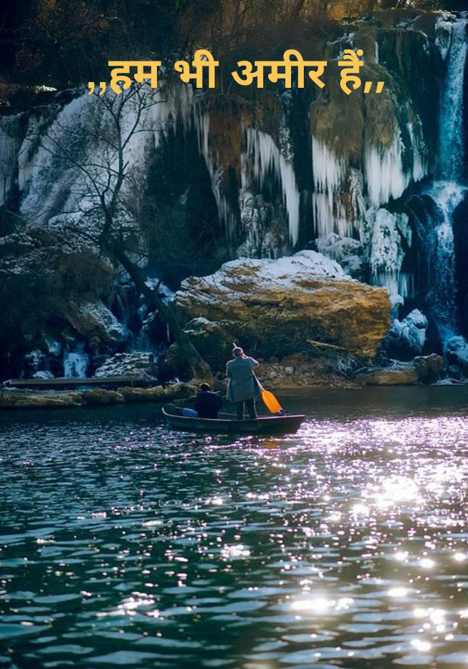 हम लोगों में से ज़्यादातर लोगों ने इस गरीबी की ज़िंदगी को अपनी तक़दीर मान उसे अपना लिया है और उम्र भर मेहनत कर ज़िंदगी को बिना शर्तों के गुज़ारा है, क्योंकि शर्तें रखना हमारी ज़िंदगी में नहीं हमें तो खुद को इन शर्तों पर चल ज़िंदगी को हर मोड़ पर समझौतों की ताक पर गुज़ार बस आगे बढ़ते चलना है क्योंकि ये हमारी हल्की जेब हमारा शर्तों को मज़बूती नहीं देती और जिन लोगों की जेब में उनकी उम्र से ज़्यादा रुपये होते हैं उनकी ज़िंदगी शर्तों के मुताबिक चलती है मगर हमारा क्या हम तो अगर एक रोटी की ज़रूरत हो तो आधी में ही सब्र कर उसे खा कर सो जाया करते हैं और अगले दिन उस आधी को करने की जद्दोजहद में लग जाया करते हैं और इसी उधेड़ बुन में अपने बिस्तर पर पलकें छपकाते हुए आखिरकार गहरी नींद में थके मांदे बेहोश हो सो जाया करते हैं मगर उधर अमीरों की नींद तो उनकी ऊँची ऊँची ख्वाहिशों की उड़ान भर जाने कहीं कोसों दूर जाकर जैसे खो गई है और करवट बदल पुरी रात आँखों आँखों में ही गुज़र गई है ये जान तब हमें ये महसूस होता है की हम गरीब भले ही पैसे से हो सकते हैं मगर हमारे पास कम से कम ये सुकून भरे पल और चैन की ये मीठी सी नींद की कीमती धरोहर तो है जो सिर्फ हमारे ही पास ही हो सकती है जिसे हमसे कोई चाहकर भी छीन सकता और इस बात की हमको बहुत ज़्यादा खुशी है की हम भी अमीर हैं ।