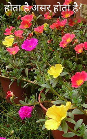 "मुझ पर तो होने लगा", मैने शरारत में कहा। शक्की नजरों से मुझे और पत्थरचट्टा को देखते हुए सामने से गुलाबी दस बजिया ने कनखियों से देखा और बोली "हम्म! शक्ल से कुछ लग तो रहा है"। क्रोटन ने उसे सरसराते हुए छुआ और कहा "इतने खूबसूरत मौसम में नाजुक लफ्जों का इस्तेमाल किया करो तुम दोनों। देखो बादल भी इधर ही चले आ रहे है।"