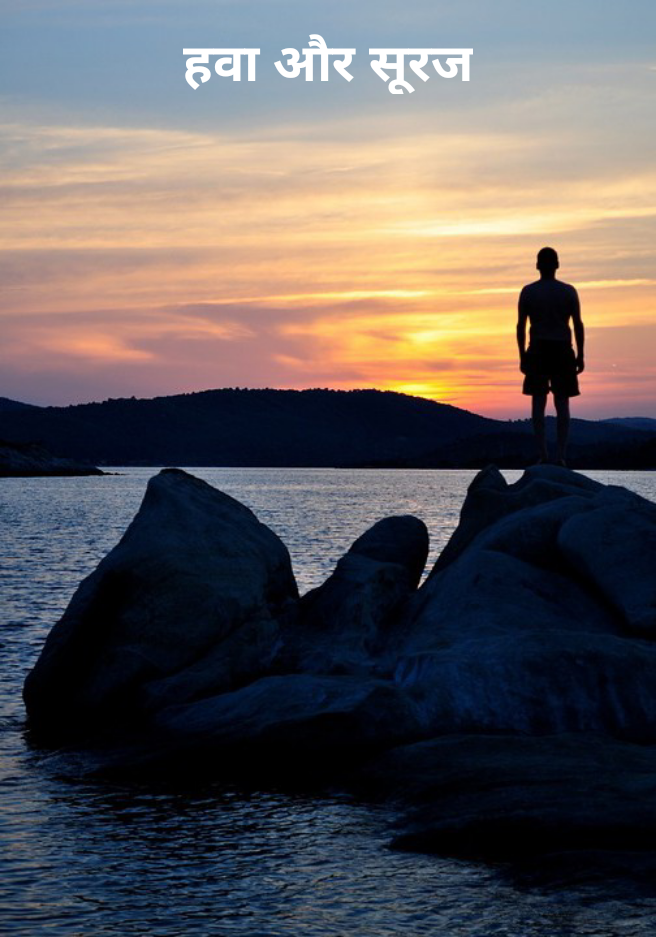 एक बार हवा और सूरज में बहस छिड़ी। हवा ने कहा "मैं तुमसे अधिक बलवान हूं।" सूरज ने कहा "नहीं, मैं तुमसे अधिक बलवान हूं।" उसी समय वहाँ से एक आदमी जा रहा था, उसने एक शॉल लपेटी हुई थी। हवा ने उस आदमी की ओर देखकर कहा कि जो भी आदमी के शरीर के ऊपर से शॉल को अलग कर देगा, वही अधिक बलवान होगा।