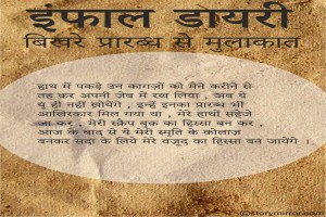 अपने परिवार के साथ इंफाल की यात्रा में संयोग से हाथ आ गये , किसी की डायरी के कुछ फटे पन्नों ने , मुझे एक रोमांचकारी साक्षात्कार दिया . मैंनें तब जाना कि प्रारब्ध भी तब तक भटकने के लिये अभिशप्त होता है , जब तक वो अपना ठिकाना न पा ले
