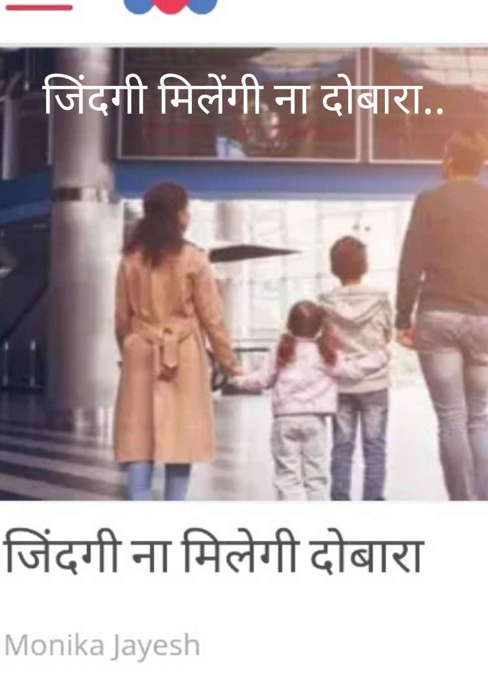 बस कहना यही है ..कि ज़िन्दगी सिर्फ एक बार मिलती है.. उसे खुशी से जियो क्या पता कल ये ज़िन्दगी दोबारा ना मिले.. ये तो हमारी खुशनसीबी थी की हम अपने परिवार से दोबारा मिल पाए .. दोस्तों बस कहना यही है.. अपनी ज़िन्दगी है खुशहाल तरीकों से जियो आप जैसा जीना चाहते है वैसे ही.. किसी की ख़ुशी में तुम्हें ख़ुशी मिले.. या अपनी खुशी से किसी को एक नया मुकाम.. जो जी में आए वही करो क्या पता ये ज़िन्दगी कब चली जाये और हम रहे ना रहे... ज़िंदगी ना मिलेगी दोबारा।