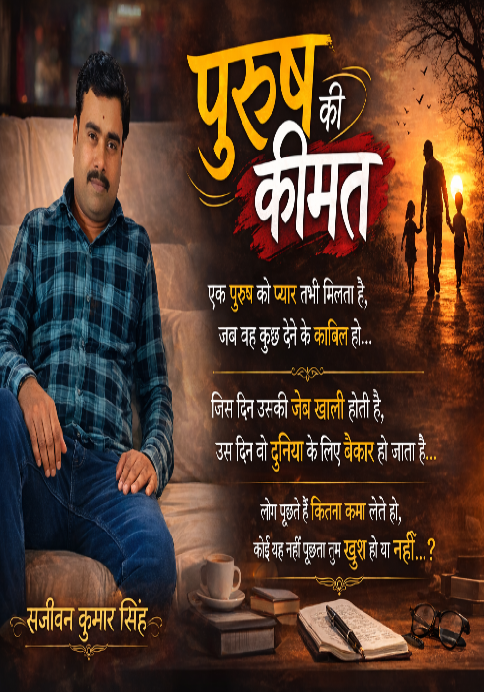 एक पुरुष को प्यार तभी मिलता है, जब वह कुछ देने के काबिल हो। जब तक उसकी जेब भरी रहती है, जब तक वह परिवार और समाज की जरूरतों को पूरा करता रहता है, तब तक उसे सम्मान भी मिलता है और अपनापन भी। मगर जैसे ही उसकी जेब खाली होती है, जैसे ही उसकी कमाई रुकती है, वैसे ही उसकी अहमियत भी धीरे-धीरे कम होने लगती है।