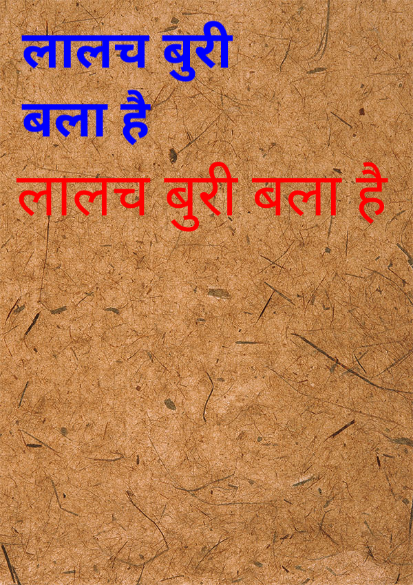 एक दिन कि बात है। एक गांव में एक लड़का था उसका नाम राहुल था। एक दिन वह जंगल में घूम रहा था तभी वह एक बहुत सुन्दर बक्सा देखा जो कि बहुत चमक रहा था। उसे लगा कि वह तो मेरा नहीं है तो मैं उस चीज़ को क्यों उठाऊँ। वह आगे चला गया। जब शाम हो गई तो वह वापस घर लौटा। उसे वह बक्सा फिर से मिला। उसे तो उसकी चमक के बारे में सोच कर लोभ होने लगा । उसे वह घर ले गया। जब वह उसको खोला तो उसे उसके अंदर बहुत सोना हीरा था। लेकिन उसे यह बात पता नहीं था की पूरा नीचे एक काला साँप था। जब वह अपना हाथ पूरा नीचे लाया तो साँप ने उसे काट दिया और वह मर गया।
