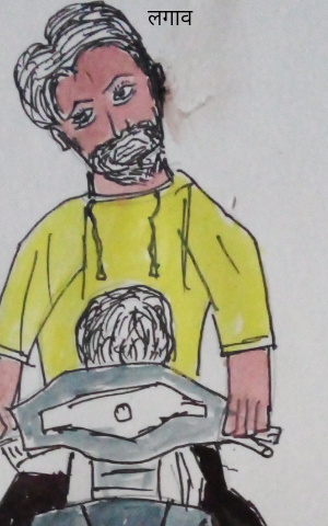 "आवु छे आवु छे " कहते हुए वो स्कूटी के आगे के हिस्से पर चढ गया और खड़ा रहा।