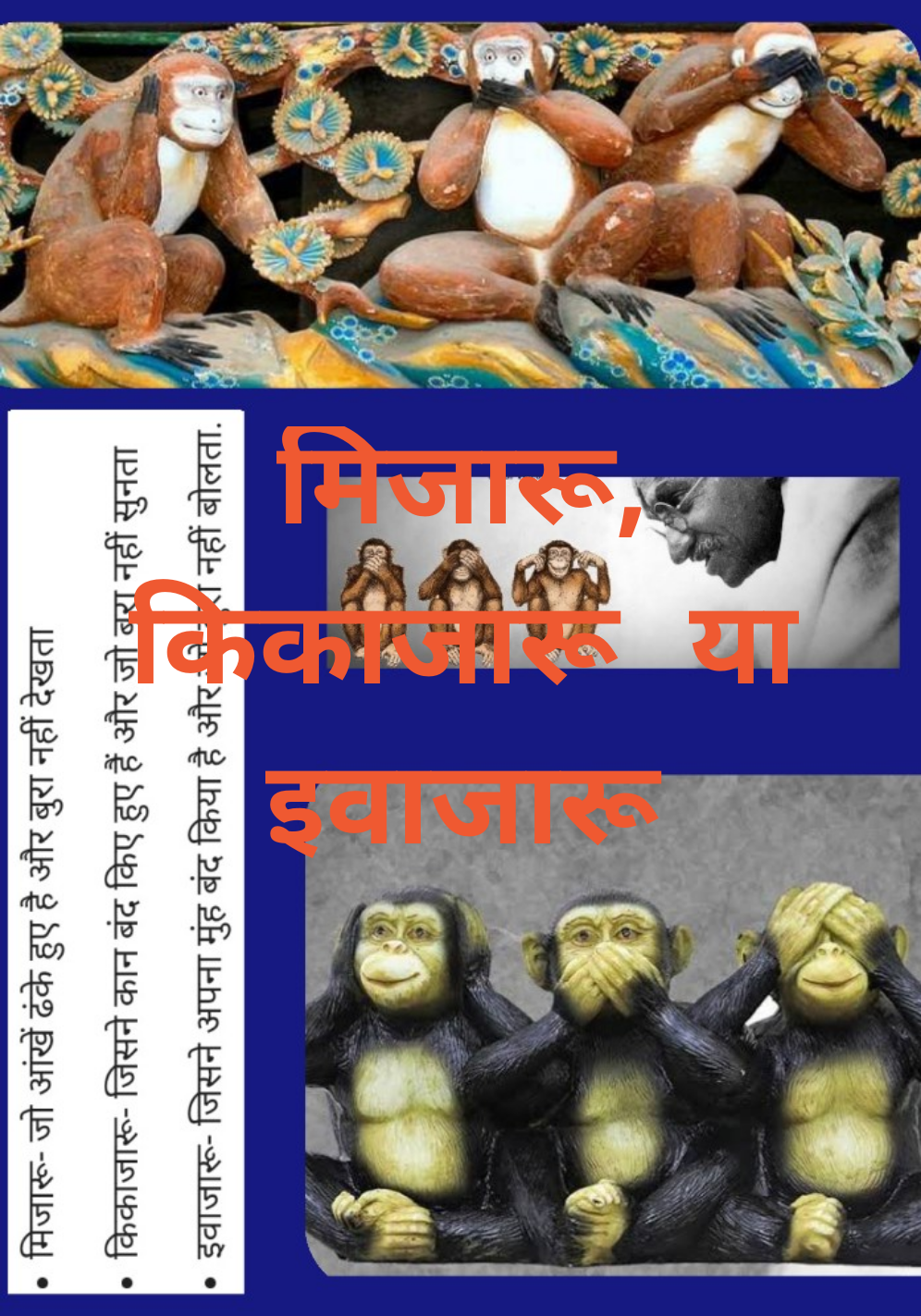 "जापानी संस्कृति के अनुसार आँखें बंद किए हुए वाला 'मिजारू', कान बंद किए हुए वाला 'किकाजारू' और मुंह बंद किए हुए वाला 'इवाजारू'!"