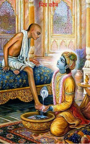 हमारे यहॉं दोस्ती की मिसाल कृष्ण और सुदामा की दोस्ती से दी जाती है। कृष्ण और सुदामा संदीपिनि ऋषि के आश्रम में साथ पढ़ते थे। दोनों दोस्त थे। साथ ही पढ़ते थे साथ ही गुरु सेवा के लिये लकड़ी काटने जाते थे। पढ़ाई ख़त्म होने का बाद कृष्ण द्वारिका चले गये, वहॉं द्वारिकाधीश बने। उधर सुदामा निर्धन ब्राह्मण थे। निर्धनता से तंग आकर उनकी पत्नी ने उन्हें कृष्ण के पास भेजा। उपहार में वे एक पोटली में चिउड़ा बॉंधकर ले गये। वहॉं कृष्ण जी ने उनका बहुत आदर सत्कार किया और अपने हाथ से उनके चरण धोये। कवि नरोत्तम दास ने इसका वर्णन किया है-