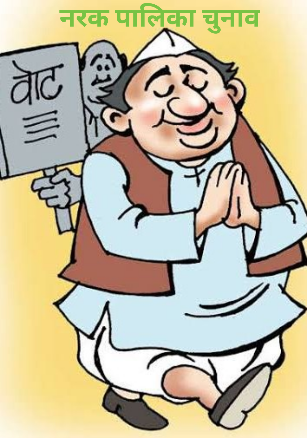 आज मौहल्ले में नेताजी का आना हुआ। नर्क पालिका के चुनाव जो थे। वैसे हमारे नेताजी समय के बड़े पाबंद थे। प्रत्येक कार्य को उसके सही समय पर ही करते थे, इसिलए चुनाव आते ही लोगों के घर-घर तक जाने लगे। इससे पहले वे कभी भी दिखाई नही दिए थे। खैर चुनाव प्रचार काफी जोर-शोर से चल रहा था। नेताजी का एक चमचा लाउड-स्पीकर पर दहाड़े मार-मार कर चिल्ला रहा था-