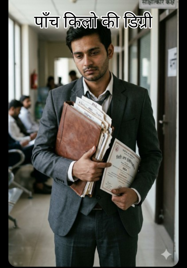 आर्यन का कमरा किसी इंसान का बेडरूम कम और डिग्रियों का म्यूजियम ज़्यादा लगता था। बी.टेक, एम.बी.ए., पीएच.डी., और ना जाने कौन-कौन से डिप्लोमा। दीवार पर पेंट की जगह फ्रेम किए हुए सर्टिफिकेट टंगे थे। आर्यन का सीना इन डिग्रियों को देखकर गर्व से फूल जाता था, लेकिन उसके पिता का सीना चिंता से सिकुड़ता जा रहा था। एक कड़वा सच यह था कि घर की दीवारें तो डिग्रियों से भरी थीं, लेकिन पिछले तीन साल से आर्यन की जेब बिल्कुल खाली थी। हर इंटरव्यू में आर्यन अपनी पाँच किलो की फाइल लेकर जाता और टेबल पर ऐसे पटकता जैसे कोई राजा अपना मुकुट रख रहा हो। लेकिन हर बार उसे एक ही जवाब मिलता— "आप ओवर-क्वालिफाइड हैं," या फिर "सॉरी, यहाँ वैकेंसी फुल हो गई है।" आर्यन ने शायद ही कोई शहर छोड़ा हो जहाँ उसने नौकरी के फॉर्म न भरे हों। कभी इस शहर में पेपर देने के धक्के खाता, कभी उस शहर में इंटरव्यू की लाइनों में घंटों खड़ा रहता। लाखों रुपये फॉर्म भरने और सफर करने में खर्च हो गए, लेकिन नौकरी का कहीं नामोनिशान नहीं था। धीरे-धीरे उसका डिग्रियों का घमंड अंदर ही अंदर हताशा में बदल रहा था। एक दिन आर्यन को शहर की सबसे तेज़ी से उभरती कंपनी 'माइंड-क्राफ्ट इनोवेशन' से इंटरव्यू का बुलावा आया। आर्यन ने अपना बचा-खुचा हौसला बटोरा, सूट पहना और डिग्रियों का वह भारी बोझ उठाकर कंपनी पहुँच गया। उसे सीधा बॉस के केबिन में भेजा गया। आर्यन ने सोचा था कि अंदर कोई उम्रदराज़, चश्मा लगाए हुए तजुर्बेकार बॉस बैठा होगा। लेकिन दरवाज़ा खोलते ही वह हैरान रह गया। बॉस की कुर्सी पर एक बहुत ही यंग और आत्मविश्वास से भरी लड़की बैठी थी— रिया। उसने नीले रंग की जींस और एक सादी सफेद शर्ट पहनी हुई थी। आर्यन ने अंदर कदम रखा और अपनी भारी-भरकम फाइल टेबल पर रख दी। "गुड मॉर्निंग! मैं आर्यन हूँ। ये रही मेरी फाइल। इसमें मेरी बी.टेक, एम.बी.ए., और पीएच.डी. की डिग्रियां हैं। मैंने अपनी क्लास में हमेशा 95% से ज़्यादा स्कोर किया है।" रिया ने फाइल की तरफ देखा तक नहीं। उसने आर्यन को देखा और हल्की सी मुस्कान के साथ बोली, "बैठिए आर्यन। आपकी डिग्रियां बहुत भारी लग रही हैं, कहीं इस टेबल का कांच ना टूट जाए।" आर्यन को यह बात चुभ गई। उसने कुर्सी पर बैठते हुए कहा, "मैम, ये डिग्रियां मेरी सालों की कड़ी मेहनत हैं। मैंने दिन-रात एक करके ये नंबर कमाए हैं। मुझे मैनेजमेंट की हर थ्योरी रटी हुई है।" रिया ने अपनी कुर्सी पीछे की और बड़े ही शांत लहज़े में कहा, "किताबों की दुनिया से बाहर निकलिए आर्यन। चलिए, एक प्रैक्टिकल सवाल का जवाब दीजिए। मान लीजिए, हमारी कंपनी का एक प्रोडक्ट मार्केट में बुरी तरह फ्लॉप हो गया है। कस्टमर गालियां दे रहे हैं और शेयर मार्केट में हमारे भाव गिर रहे हैं। आप इसे कैसे संभालेंगे?" आर्यन ने तुरंत किताबी ज