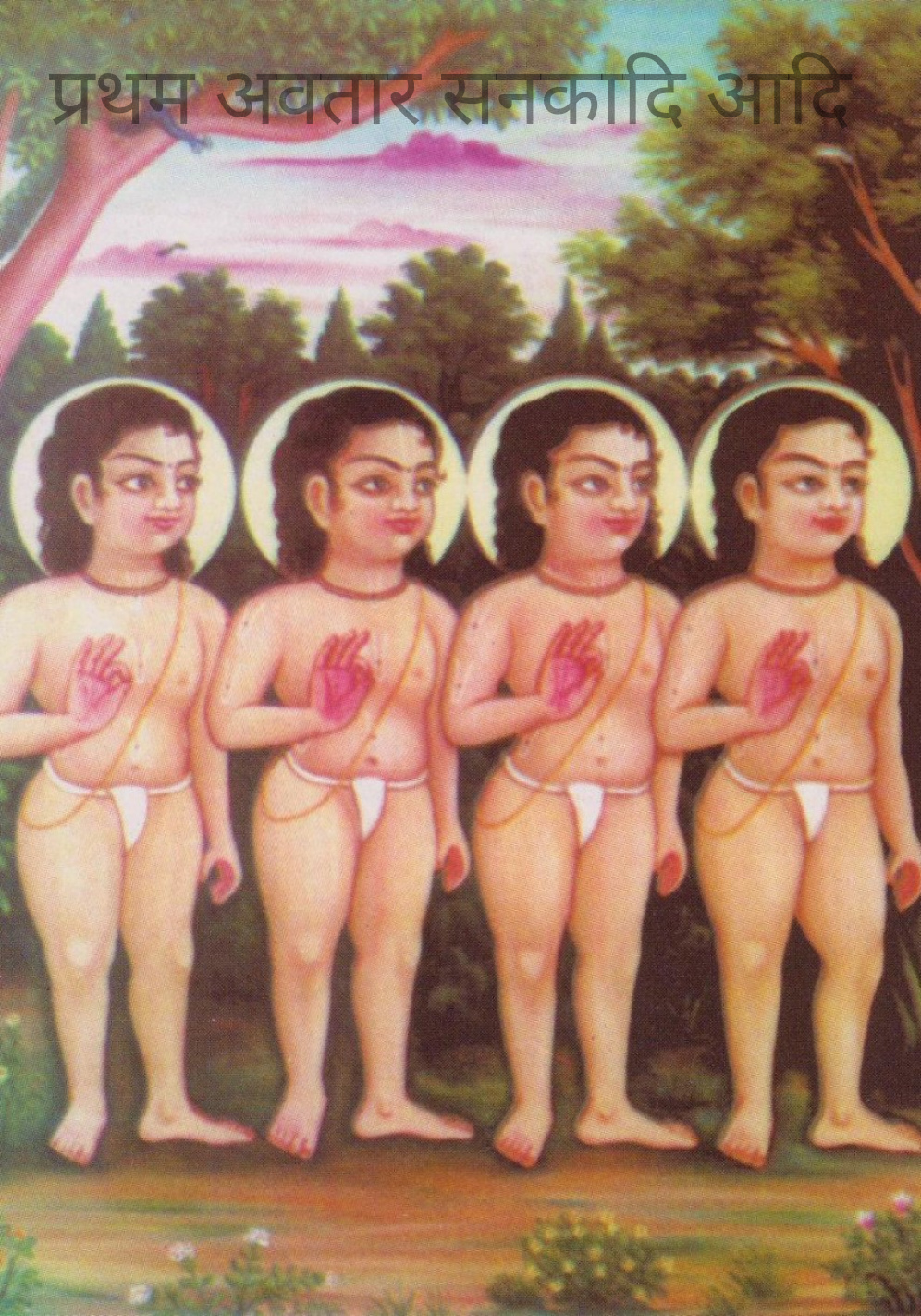 तो भगवान नारायण ने पहला अवतार ब्रह्मा जी के चार मानस पुत्र सनक , सनंदन , सनातन और सनत्कुमार के रूप में लिया । ये चारों मिलकर "सनकादि" कहलाते हैं । ये चारों ब्रह्म रूप होने के कारण ब्राह्मण कहलाते हैं जो सदैव "दिगंबर" रहते हैं और उनकी आयु सदैव 5 वर्ष ही रहती है । ब्रह्मा जी ने इन चारों कुमारों की उत्पत्ति सृष्टि को आगे बढ़ाने के लिए की लेकिन इन चारों ने सृष्टि के चक्कर में पड़ने से मन कर दिया और भगवान नारायण का जाप करने लगे । सृष्टि की रचना में उदासीन रहने के कारण इन चारों ने भक्ति, ज्ञान और विवेक का मार्ग शुरू किया । ये चारों ब्रह्मज्ञानी हैं अर्थात निर्गुण निराकार के उपासक हैं । इन्हीं चारों को चार वेद भी कहा जाता है । इन्होंने सबसे पहले नारद मुनि को ज्ञान दिया था ।