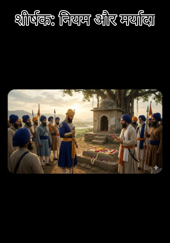 शीर्षक: नियम और मर्यादा एक बार श्री गुरु गोबिंद सिंह जी अपने सिखों के साथ कहीं जा रहे थे। रास्ते में एक बहुत ही प्रसिद्ध संत की समाधि (कब्र) आई। गुरु साहिब ने वहाँ से गुज़रते हुए अपनी तीर से उस समाधि को हल्का सा सलाम (नमन) किया। पास खड़े सिखों ने यह देखते ही गुरु जी को टोक दिया। सिखों ने कहा, "महाराज! आपने ही हमें सिखाया है कि 'मढ़ी-मसाण' (कब्रों या समाधियों) को नहीं पूजना चाहिए और न ही नमन करना चाहिए। फिर आपने आज नियम क्यों तोड़ा? मर्यादा के अनुसार आपको सज़ा (तनख्वाह) लगनी चाहिए।" गुरु साहिब यह सुनकर बहुत खुश हुए। उन्होंने मुस्कुराकर कहा, "सिक्खों, मैं तुम्हारी परीक्षा ले रहा था कि क्या तुम मेरे शब्दों को याद रखते हो या आँख बंद करके मेरा पीछा करते हो। तुमने मुझे सही पकड़ा है।" गुरु जी ने तुरंत अपनी गलती स्वीकार की और सिखों से कहा कि वे उन्हें मर्यादा के अनुसार सज़ा दें। सिखों ने गुरु जी को 500 रुपये का जुर्माना (तनख्वाह) लगाया। गुरु जी ने खुशी-खुशी वह जुर्माना भरा और सिखों की तारीफ की कि उन्होंने अपने गुरु को भी नियम की याद दिलाने में संकोच नहीं किया। यह साखी सिखाती है कि धर्म में कोई भी नियम से ऊपर नहीं होता, यहाँ तक कि खुद गुरु भी नहीं।