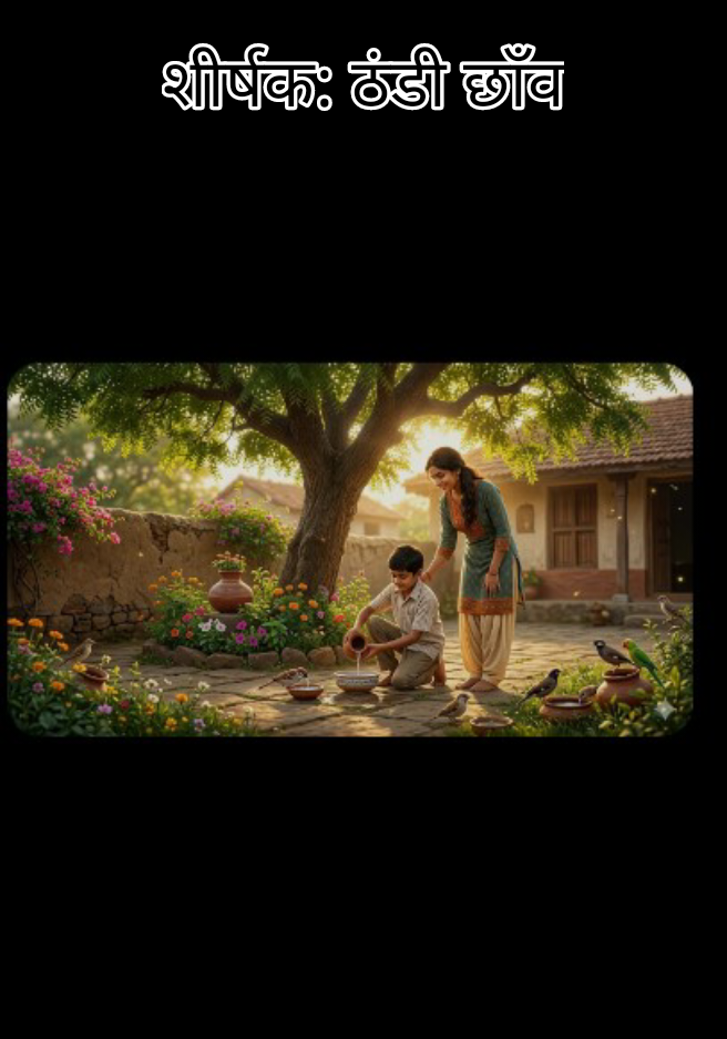 शीर्षक: ठंडी छाँव दोपहर की तपती धूप में गाँव की गलियाँ सुनसान थीं। सूरज आग उगल रहा था और परिंदे प्यास से बेहाल होकर पेड़ों की झुरमुटों में दुबके थे। आर्यन अपने घर के बरामदे में बैठा पंखे की हवा का इंतज़ार कर रहा था, तभी उसकी नज़र आँगन में मिट्टी पर पड़ी एक नन्ही गौरैया पर गई। वह प्यास के मारे अपनी चोंच खोलकर हाँफ रही थी। आर्यन तुरंत उठा और रसोई से मिट्टी का एक कोरा सकोरा ले आया। उसने उसमें घड़े का शीतल जल भरा और नीम के पेड़ की घनी छाँव के नीचे रख दिया। रिया यह सब देख रही थी। वह धीरे से पास आई और बोली, "आर्यन, हम इंसान तो अपनी प्यास माँग कर बुझा लेते हैं, लेकिन ये बेजुबान इस तपती दुनिया में कहाँ जाएँ? गर्मी सिर्फ हमारे लिए नहीं, बल्कि इनके धैर्य का भी कड़ा इम्तिहान है।" आर्यन ने मुस्कुराते हुए पानी की बूंदों को मिट्टी पर छिड़का और कहा, "सही कहा रिया, असली इंसानियत वही है जो दूसरों की खामोश तकलीफ को अपनी तकलीफ समझे। आज इस नन्ही चिड़िया की प्यास बुझाकर मुझे जो सुकून मिला है, वह एसी (AC) की ठंडी हवा भी नहीं दे सकती।" देखते ही देखते, कुछ ही पलों में वहाँ कई पक्षी उतर आए और चहचहाते हुए पानी पीने लगे। उनकी उस चहक ने आर्यन के पूरे आँगन को एक अनोखी शीतलता से भर दिया। उसे अहसास हुआ कि जब हम दूसरों की प्यास बुझाते हैं, तो हमारी अपनी रूह भी तृप्त हो जाती है