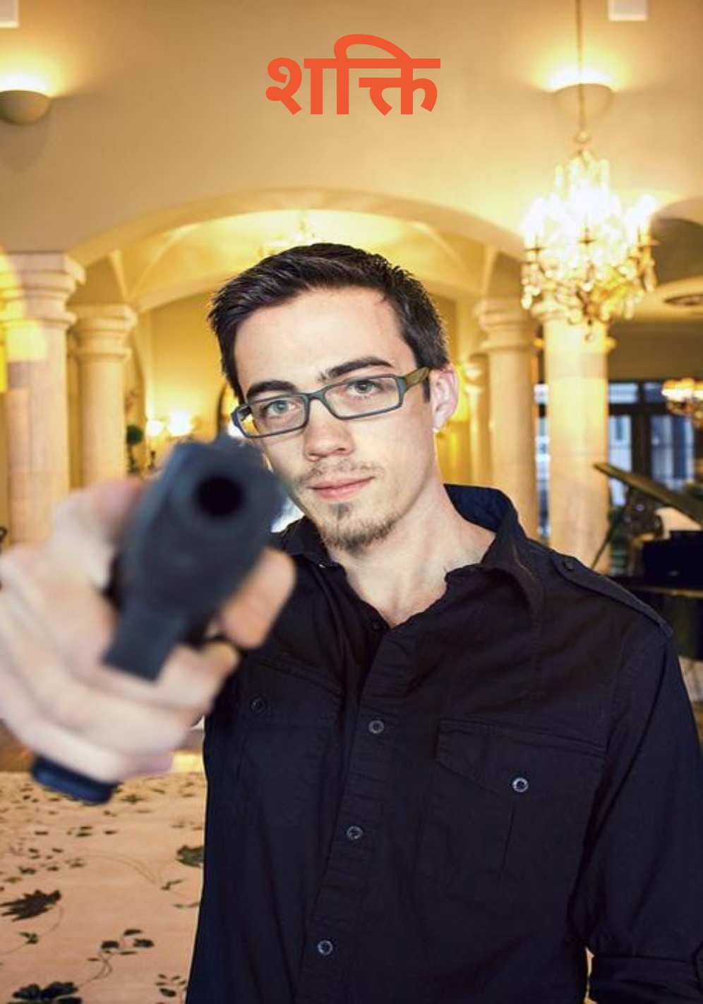 शक्ति ने नयागम को अपने दाहिने हाथ में गोली मारते हुए कहा, "यह मेरे माता-पिता दा को मारने के लिए है।"