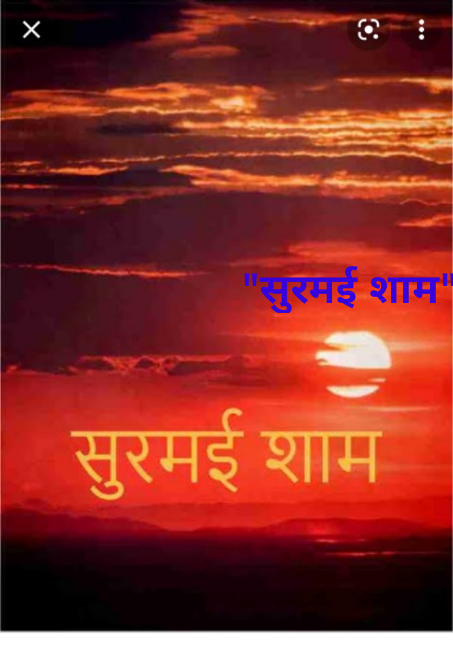 "सुरमई"होती शाम को निहारना, मंदिर में बजते घंटी और शंखनाद की मधुर ध्वनि के साथ गौधूलि की बेला में रंभाती गायों का अपने घरों को लौटने का दृश्य ,आकाश का सुरमई रंग , पक्षियों का कलरव करते अपने घोंसलों में लौटते।