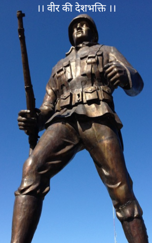 उनके बेटे के बहुत ज़िद करने के बाद दीवाली में घर आने का वादा किया था। वह मन ही मन सब सोच लिया था इस बार पापा के साथ बहुत सारे पटाखे खरीदूंगा, नए कपड़े और मिठाई का पूरा जमघट लगा दूंगा। वीर साहब उनके मिशन खत्म होते ही दीवाली के दो दिन पहले घर के लिए निकलने वाले थे। पर उसी मिशन में शत्रुओं से युद्ध के दौरान वह अपने साथियों से अलग हो गए थे। शत्रु सेना ने उन्हें पकड़ लिया और पूछताछ करने लगे। अगर भारत के सब खुफिया खबर उन्हें नहीं बताए तो मारने की धमक दी। पर वह कहाँ इस धमक से डरने वाले थे। उनसे सब जानकारी लेने जब उनके सिर पर बंधूक रखकर पूछा गया तो उनके मुहँ से तेज़ आवाज़ में निकला *यह मेरा देश है अगर मेरे देश के तरफ किसी ने आँख भी उठाई तो यह वीर इतनी तबाही मचाएगा जो अकाल और भूकंप भी नहीं मचापाएँगे।* यह बोलकर उन्होंने दुश्मनों पर अकेले ही हल्ला बोल डाला। मौत को सामने देखकर भी उन्होंने बिल्कुल नहीं घबराया।आखिरी साँस तक लड़ते रहे पर भारत की एक भी जानकारी उन्हें नहीं दी। अकेला आदमी उनके पूरे सेना के साथ कैसे लड़ पाएगा।उस मिशन के दौरान वह देश के लिए शहीद हो गए। बेटे को किया हुआ वादा तो निभाए पर खुद नहीं इस बार तिरंगे के साथ घर लौटे थे।घरवाले क्या उस दिन तो खुद भी रोए थे उनके आंगन में। उनका बेटा रोने के बजाय अपनी मम्मी को आश्वाशन देते हुए बोला माँ अब मैं पापा की ख्वाइश पूरा करूँगा । मैं भी फौजी में जाऊंगा और देश के लिए अपने कर्तव्य निभाउंगा। इक्कीस तोपों की सलामी के साथ भारतीय सेना की तरफ से उनका अंतिम संस्कार हुआ और गाँववासियों के लिए वह उदहारण बन गए।