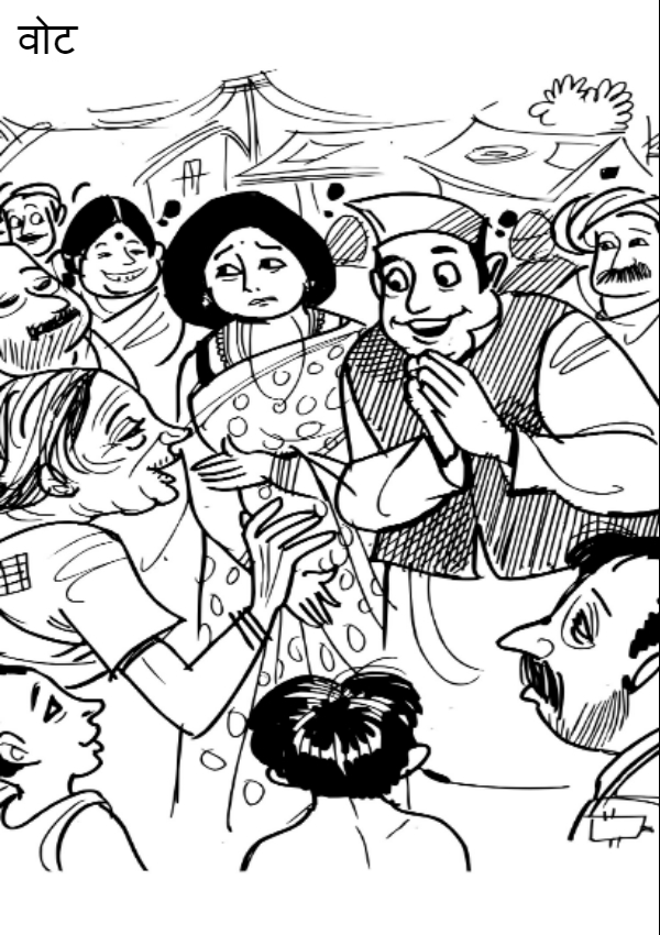 नेताजी आज ग़रीबों की बस्ती में सपरिवार आए थे। वे तकरीबन हर घर के सामने रूकते, घर के मुखिया से राम - रूमाई करते। घर की स्त्रियों से नमस्कार करते एवं बच्चों का हाथ हिलाकर अभिवादन करते। नेताजी को पहली बार झोपड़पट्टी में आया देखकर सारे लोग हैरान थे। लेकिन अपने नेताजी को अपने घर देखकर खुश भी थे।