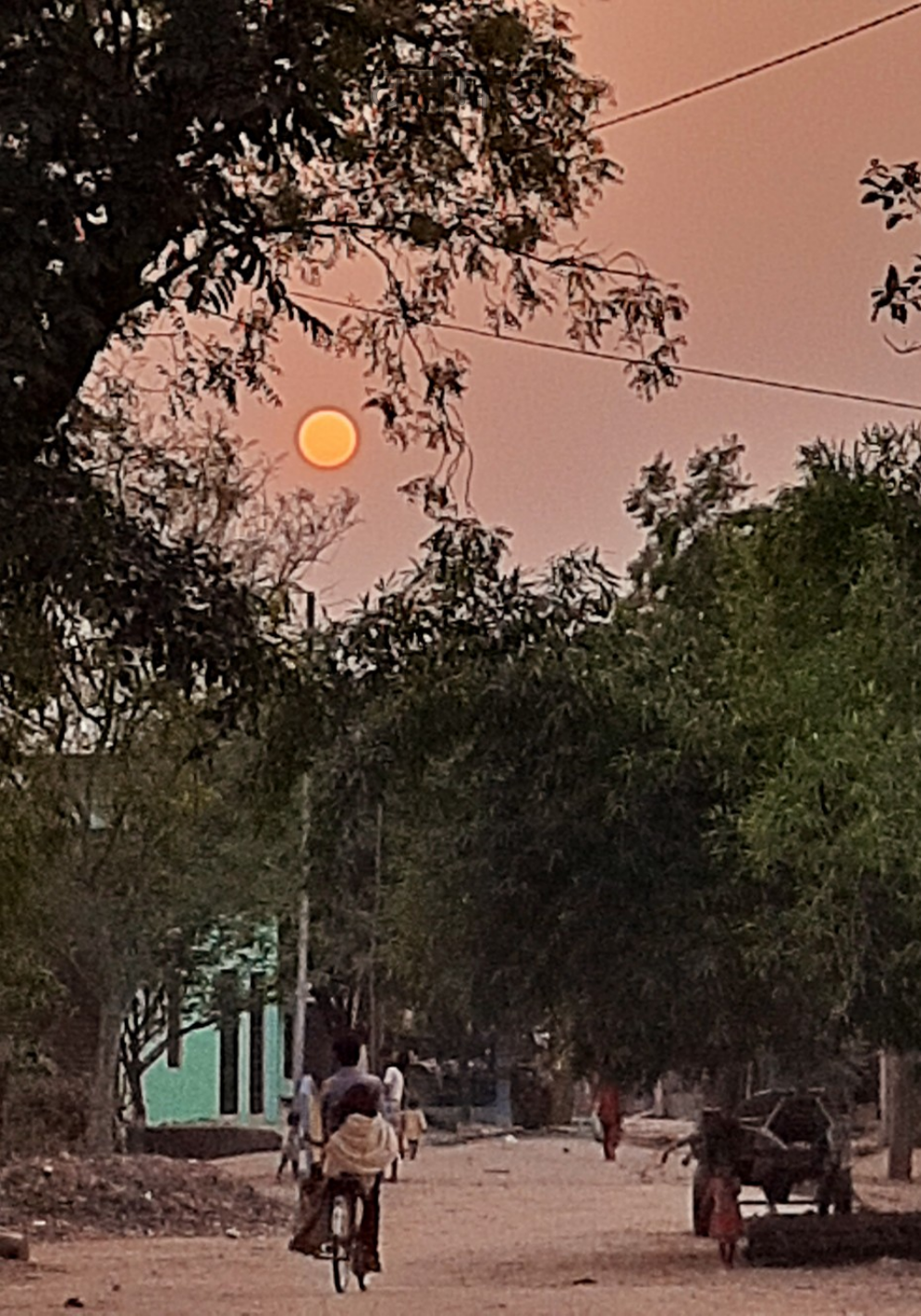 ढलते सूरज की खूबसूरती से नजऱ हटाकर ज़रा एक पल तस्वीर की ख़ामोशी को शान्त चित्त से समझ कर देखो। अरे..विश्वास करो हृदय आनंद से झूम उठेगा ,जब देखोगे तुम उस नन्ही सी बच्ची को जो खड़ी है अकेली घने मेघ जैसे दरख़्त की छाया में, जिसमें ना मोह है ना समझ है जीवन के विभिन्न आयामों की, जिसे सिर्फ परवाह है तो केवल वर्तमान की, वह जानती है कि उसके पास केवल वर्तमान है जिसका वह मासूमियत को अपने अंदर समेटे हुए बिना किसी फिक्र के आनंद ले सकती है ।