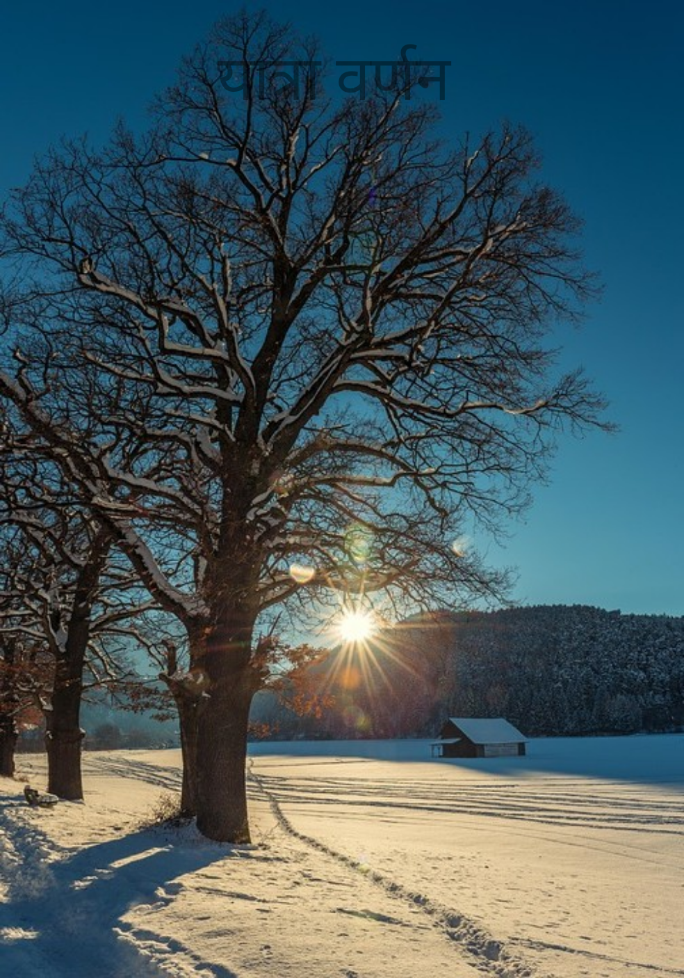सुबह मंदिर दर्शन के लिए ,नंगे पैर हम मंदिर प्रांगण में खड़े हुए । हम सब के पैर के तलवों में कंपकंपी छूटने लगी, बीच-बीच में हम गर्म पानी से पैरों को धोते रहे।