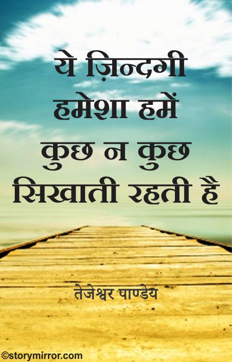 ये ज़िन्दगी हमेशा हमें कुछ न कुछ सिखाती रहती है...कभी हसना तो कभी रोना कभी गिरना तो कभी उठना कभी किसी से मिलना तो कभी बिछड़ना कभी सफलता तो कभी असफलता हाथ लगना बस ज़िन्दगी युही हमेशा चलती ही रहती है आगे बढ़ते ही रहती है और साथ साथ हमें भी ज़िन्दगी जीना सिखाती रहती है तभी तो हमेशा हमें सच्चे दिल से मुस्कुराते हुए खुश रहना और खुशिया बांटते रहना चाहिए..!!