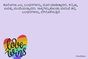ಕೊರೋನಾ ಎಲ್ಲ ಬಂಧನಗಳನ್ನು ದೂರ ಮಾಡಿತ್ತಾದರು, ಕನ್ನಿಷ್ಟ ಐವತ್ತು ಮಂದಿಯನ್ನಾದರು ಸಾಕ್ಷಿಗಿಟ್ಟುಕೊಂಡು ಮದುವೆ ತನ್ನ ಬಂಧನಗಳನ್ನು ಬಿಗಿಗೊಳಿಸುತ್ತಿದೆ.