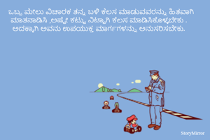 ಒಬ್ಬ ಮೇಲು ವಿಚಾರಕ ತನ್ನ ಬಳಿ ಕೆಲಸ ಮಾಡುವವರನ್ನು ಹಿತವಾಗಿ ಮಾತನಾಡಿಸಿ ,ಅಷ್ಟೇ ಕಟ್ಟು ನಿಟ್ಟಾಗಿ ಕೆಲಸ ಮಾಡಿಸಿಕೊಳ್ಳಬೇಕು . ಅದಕ್ಕಾಗಿ ಅವನು ಉಪಯುಕ್ತ ಮಾರ್ಗಗಳನ್ನು ಅನುಸರಿಸಬೇಕು.