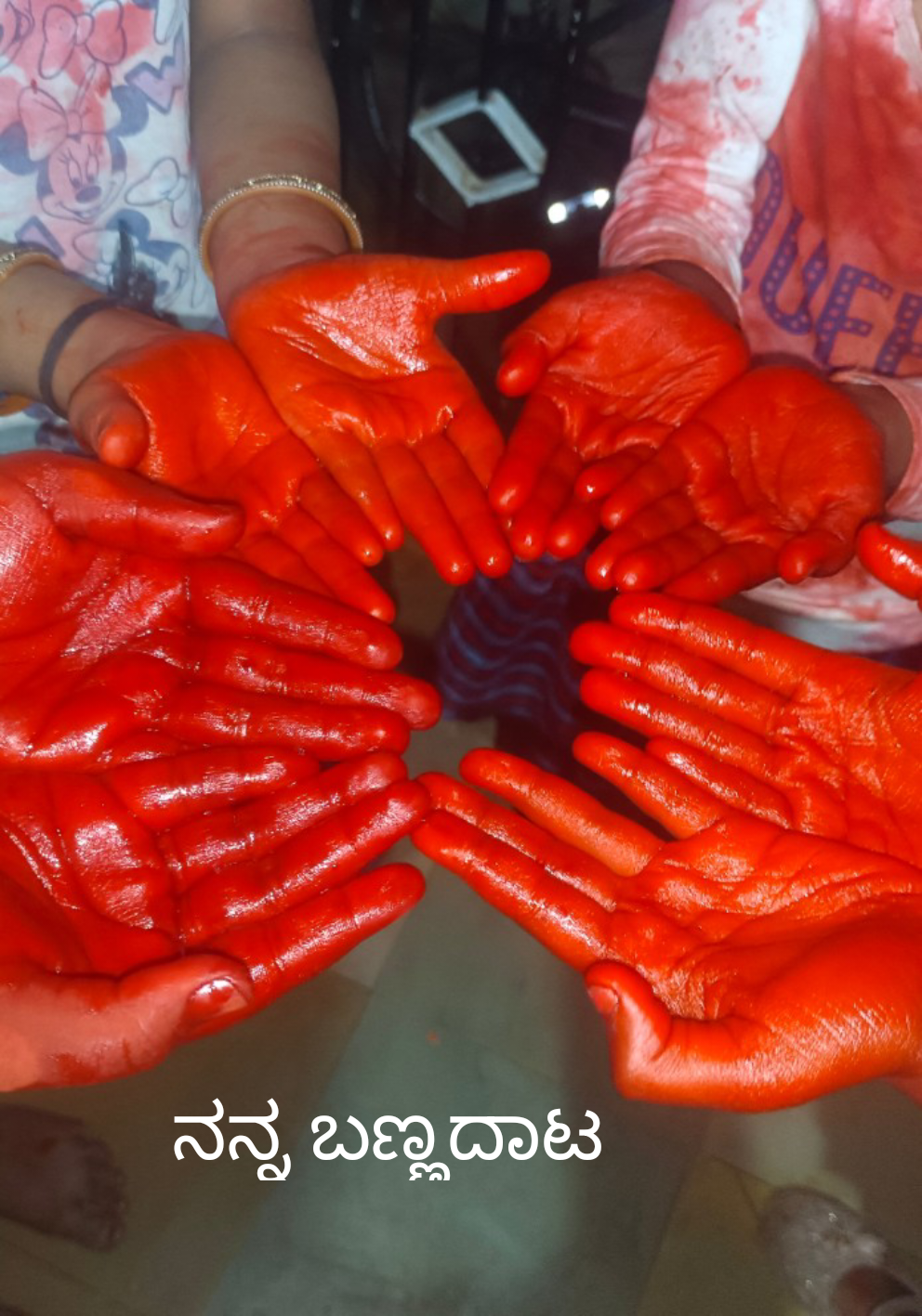"ಇಲ್ಲಾ ರಿ ಹಚ್ಚಲ್ಲಾ,ಕೈ ಬಣ್ಣ ಆಗಿದೆ ನಮ್ಮದು,ನೀವು ಒಂದು ಫೋಟೊ ತೆಗಿರಿ"ಅಂದ್ರು....