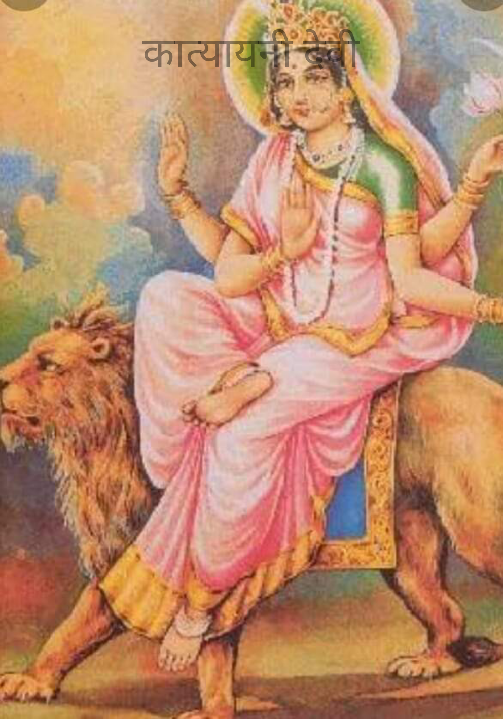सहावे रूप दुर्गेचे कात्यायनी,पहा तेजःपुंज,चार भुजाधारी.