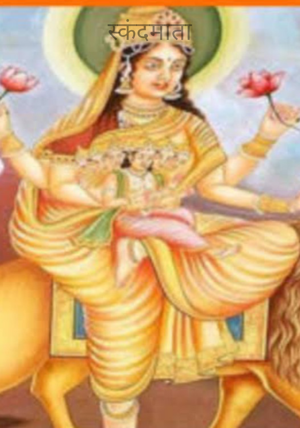 पिवळ्या रंगाचे चैतन्य कलावती जाणली ...दुर्गेला स्कंदमाता अशा नावाने ओळखली ।। १ ।।
