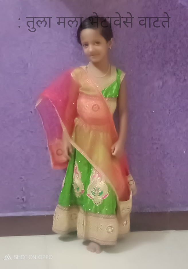तुला मला भेटावेसे वाटते, तुझ्या प्रेमाची चाहूल रोज मला येत जाते .तुझ्या संगे जीवन काढावयाचे वाटते, तुझ्या सोबत आयुष्य घालावयाचे वाटते, तुला मला भेटावेसे वाटते तुला मला भेटावेसे वाटते !