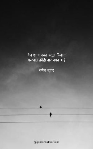 तुला सुखी पहावे ,हे का आमचे चुकले दिन रात एक करुनी चिमणी तुला आम्ही घडवले. तुला सुखी पहावे ,हे का आमचे चुकले दिन रात एक करुनी चिमणी तुला आम्ही घडवले.