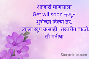 आजारी माणसाला Get wll soon म्हणून शुभेच्छा दिल्या तर, त्याला खूप उत्साही , तरतरीत वाटते. सौ मनीषा