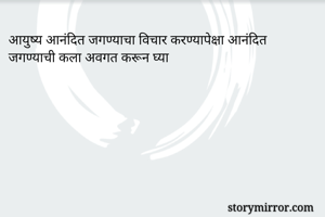 आयुष्य आनंदित जगण्याचा विचार करण्यापेक्षा आनंदित जगण्याची कला अवगत करून घ्या