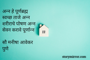 अन्न हे पूर्णब्रह्म स्वच्छ ताजे अन्न शरीराचे पोषण अन्न सेवन करावे पूर्णान्न सौ मनीषा आवेकर पुणे