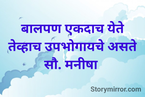 बालपण एकदाच येते तेव्हाच उपभोगायचे असते सौ. मनीषा