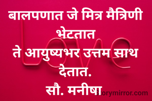 बालपणात जे मित्र मैत्रिणी भेटतात ते आयुष्यभर उत्तम साथ देतात. सौ. मनीषा