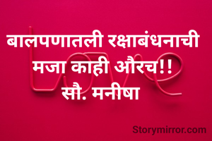 बालपणातली रक्षाबंधनाची मजा काही औरच!! सौ. मनीषा