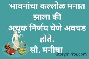 भावनांचा कल्लोळ मनात झाला की अचूक निर्णय घेणे अवघड होते. सौ. मनीषा