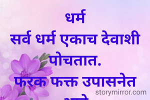 धर्म सर्व धर्म एकाच देवाशी पोचतात. फरक फक्त उपासनेत आहे सौ मनीषा आवेकर