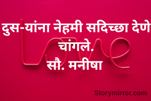 दुस-यांना नेहमी सदिच्छा देणे चांगले. सौ. मनीषा