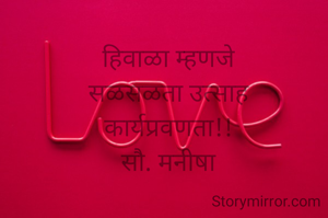 हिवाळा म्हणजे सळसळता उत्साह कार्यप्रवणता!! सौ. मनीषा