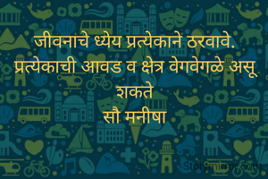 जीवनाचे ध्येय प्रत्येकाने ठरवावे. प्रत्येकाची आवड व क्षेत्र वेगवेगळे असू शकते सौ मनीषा