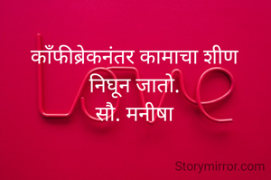 काँफीब्रेकनंतर कामाचा शीण निघून जातो. सौ. मनीषा