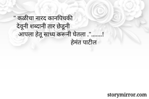 " कळीचा नारद कानपिचकी देवूनी शब्दानी तार छेडूनी आपला हेतू साध्य करूनी घेतला .".......! हेमंत पाटील