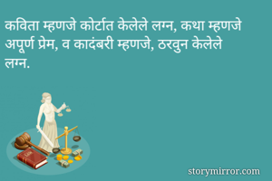कविता म्हणजे कोर्टात केलेले लग्न, कथा म्हणजे अपूर्ण प्रेम, व कादंबरी म्हणजे, ठरवुन केलेले लग्न.