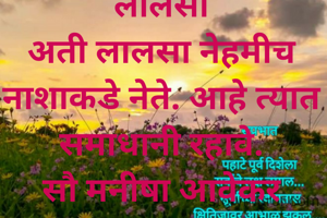 लालसा अती लालसा नेहमीच नाशाकडे नेते. आहे त्यात समाधानी रहावे. सौ मनीषा आवेकर